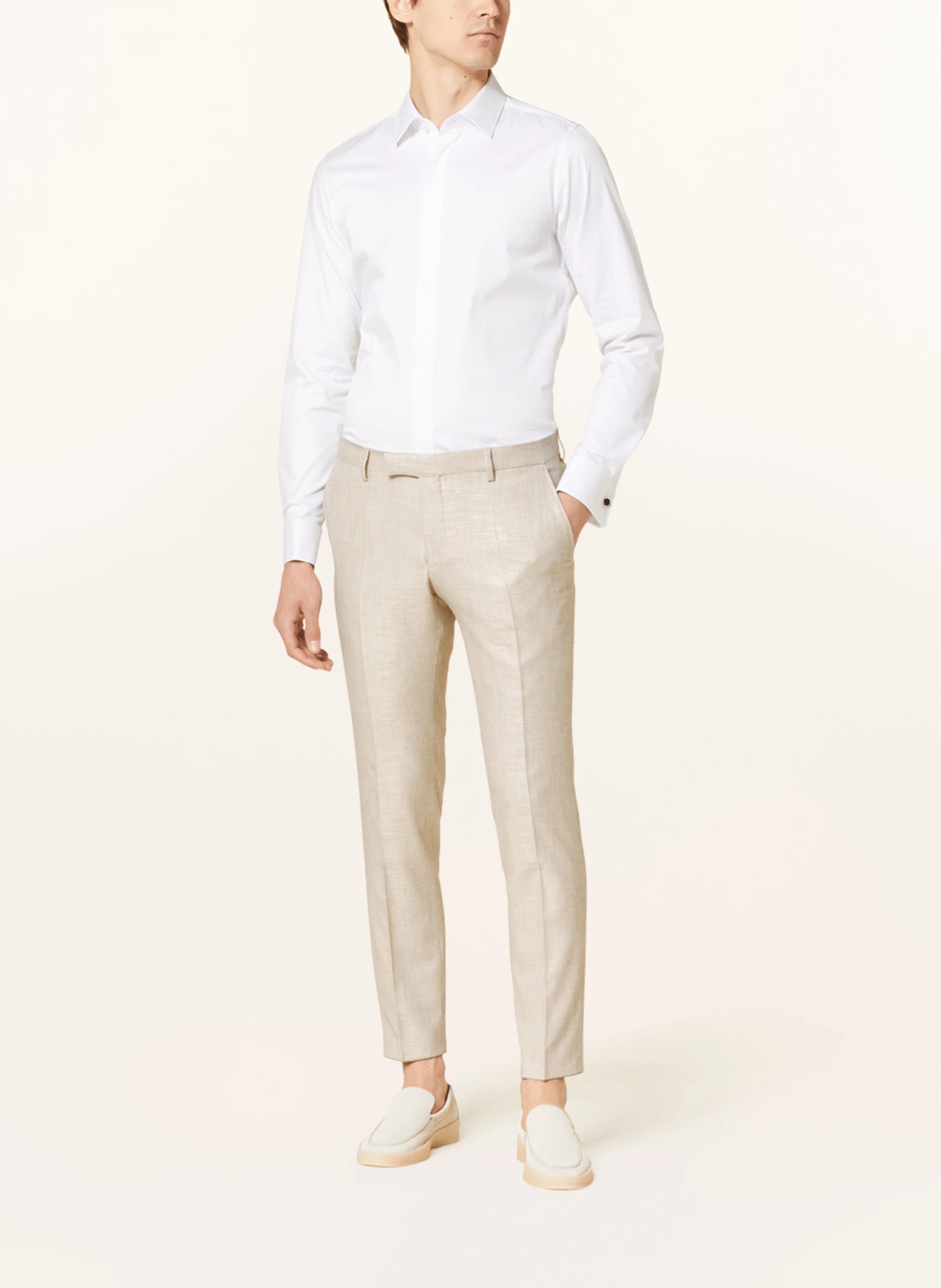 Pants details: Flat front with belt loops, angled side pockets, blind hem