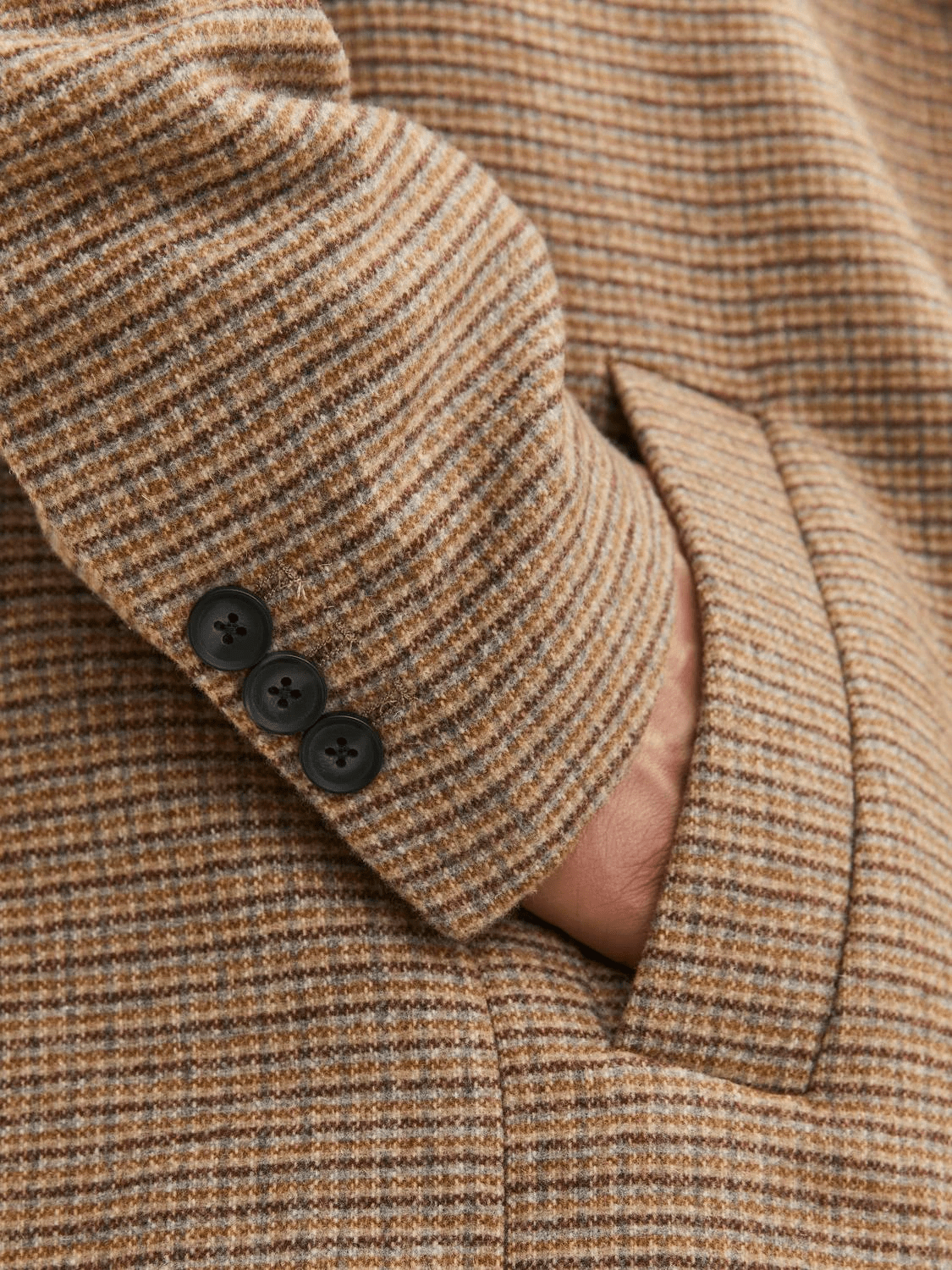 Front: Single-breasted with three-button closure