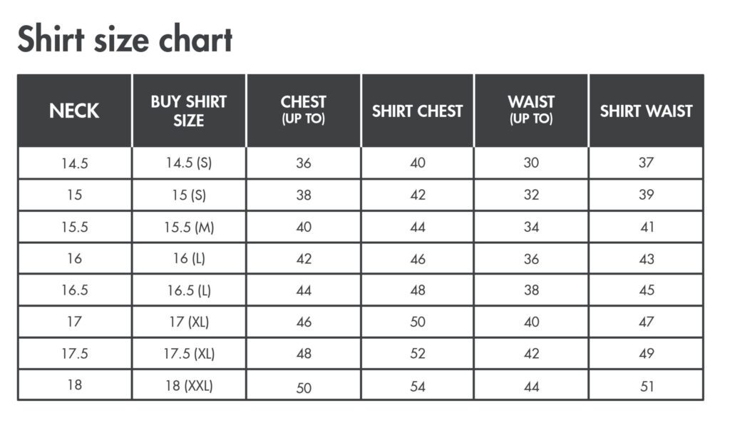 Colebe Shirt Size Chart